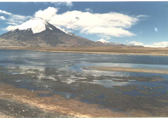Vulkan Parinacota (6342m) Lago Chungara (4500m)